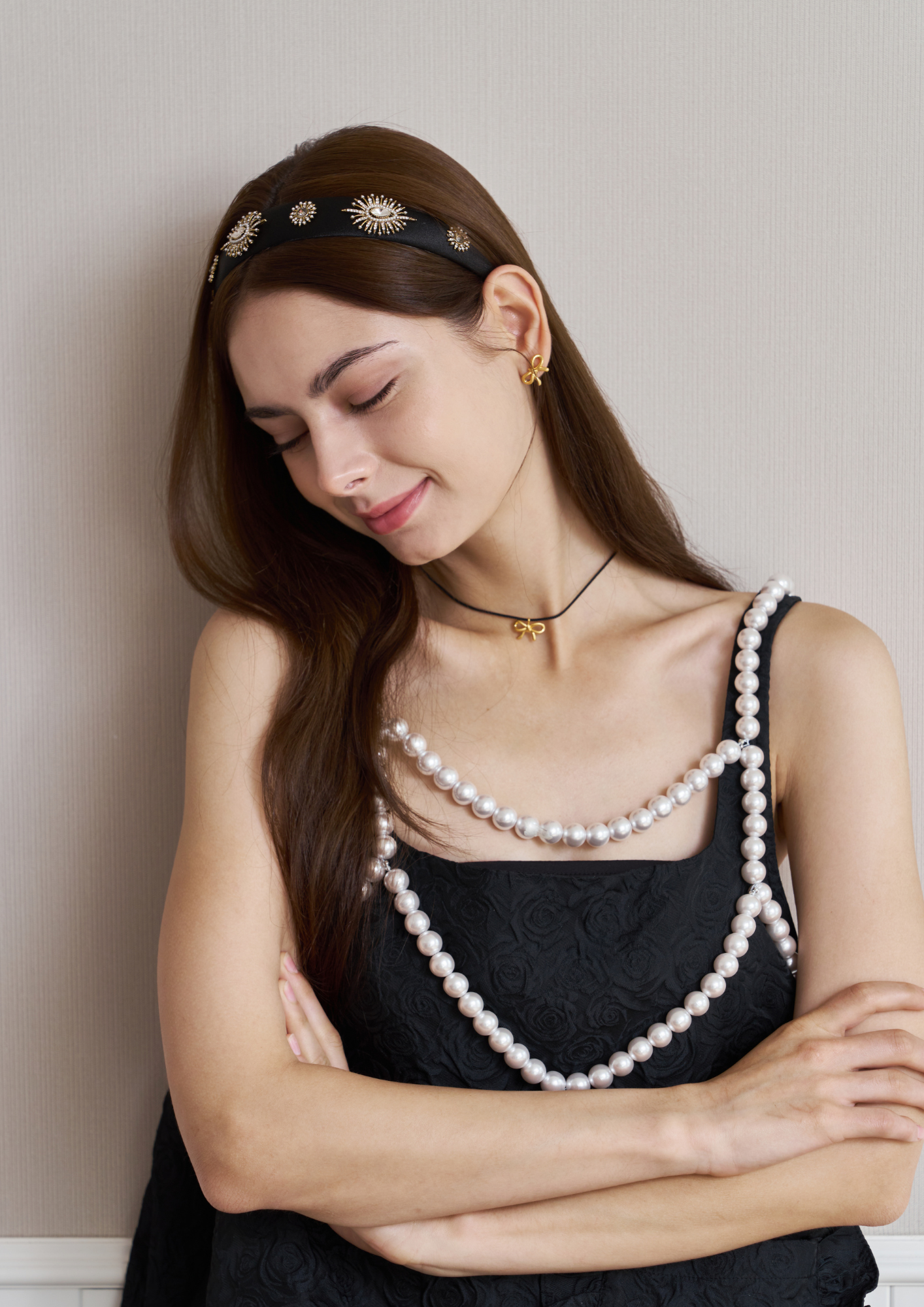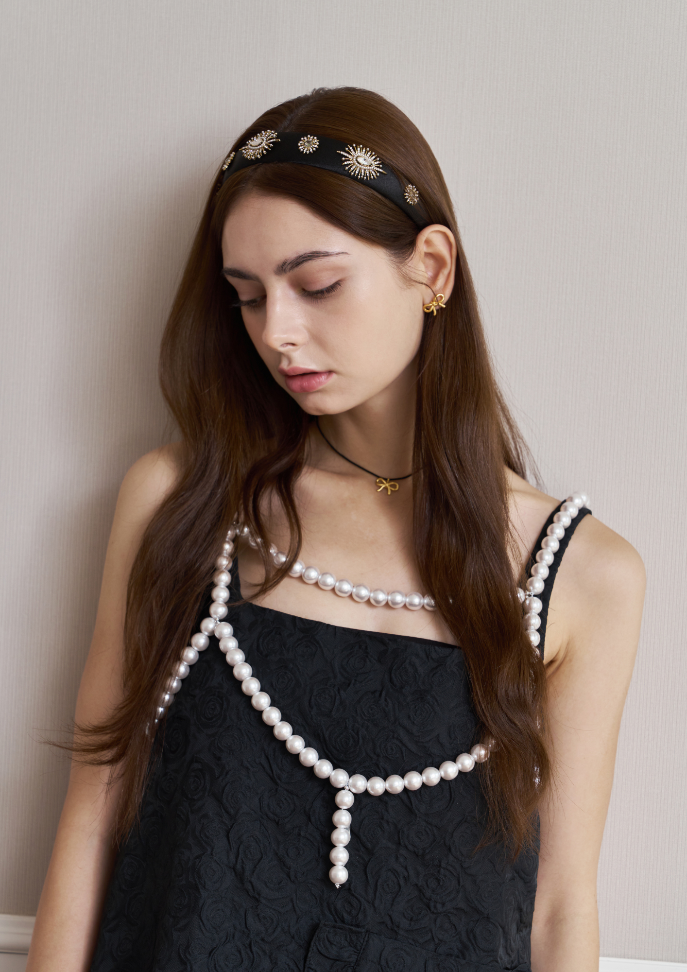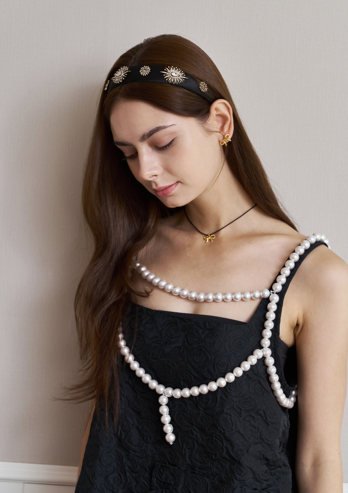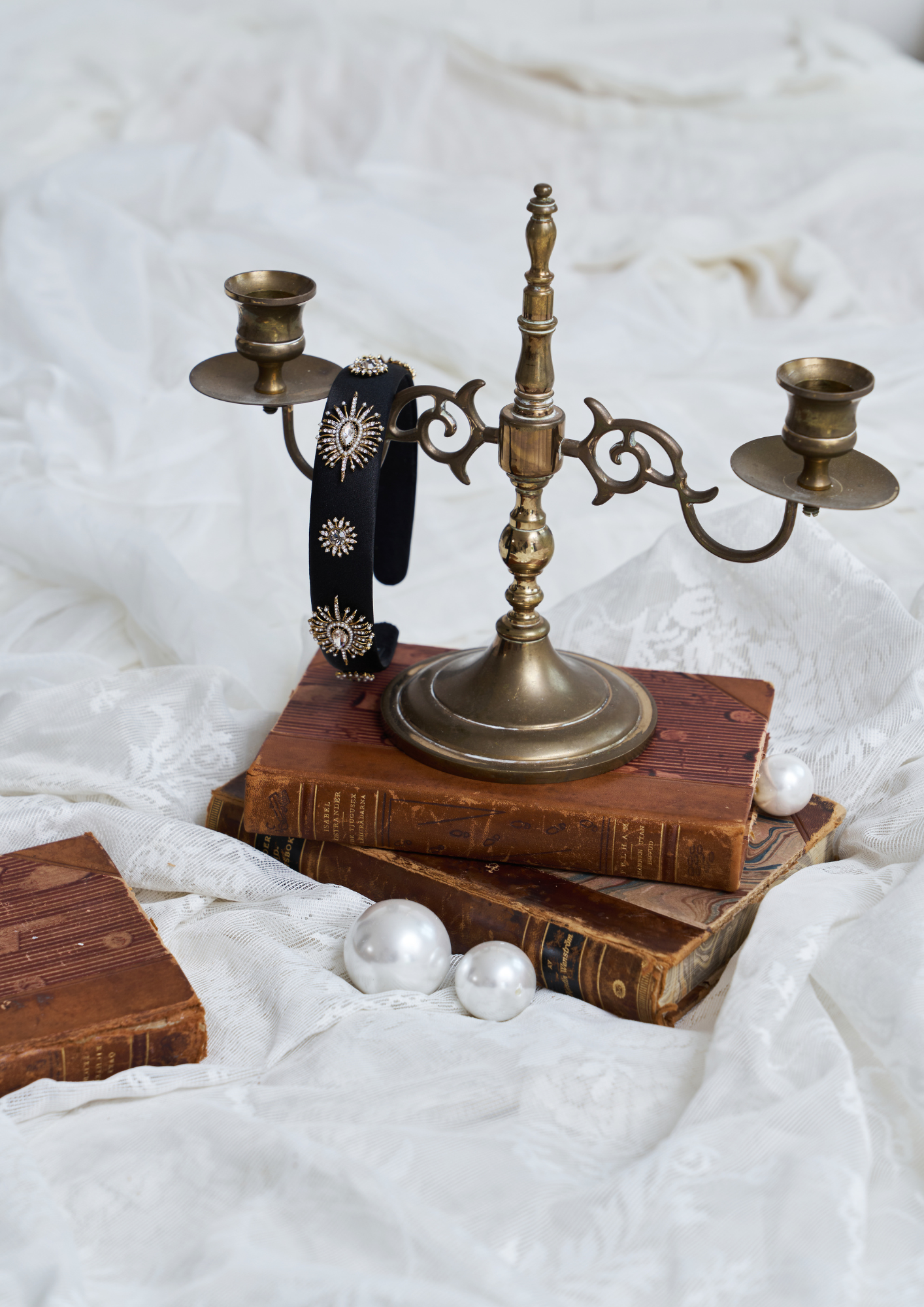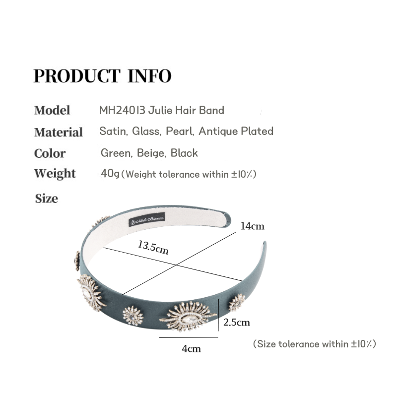 Julie Hairband is decorated with beautiful, antique-style pieces and was a huge hit at the Mela Bianca Singapore pop-up. In person, it’s not too flashy—just the perfect statement piece. Throw on a plain black or white long dress, add this hairband, and boom—you’ll be the star of the day, sparkling and all eyes on you! :)