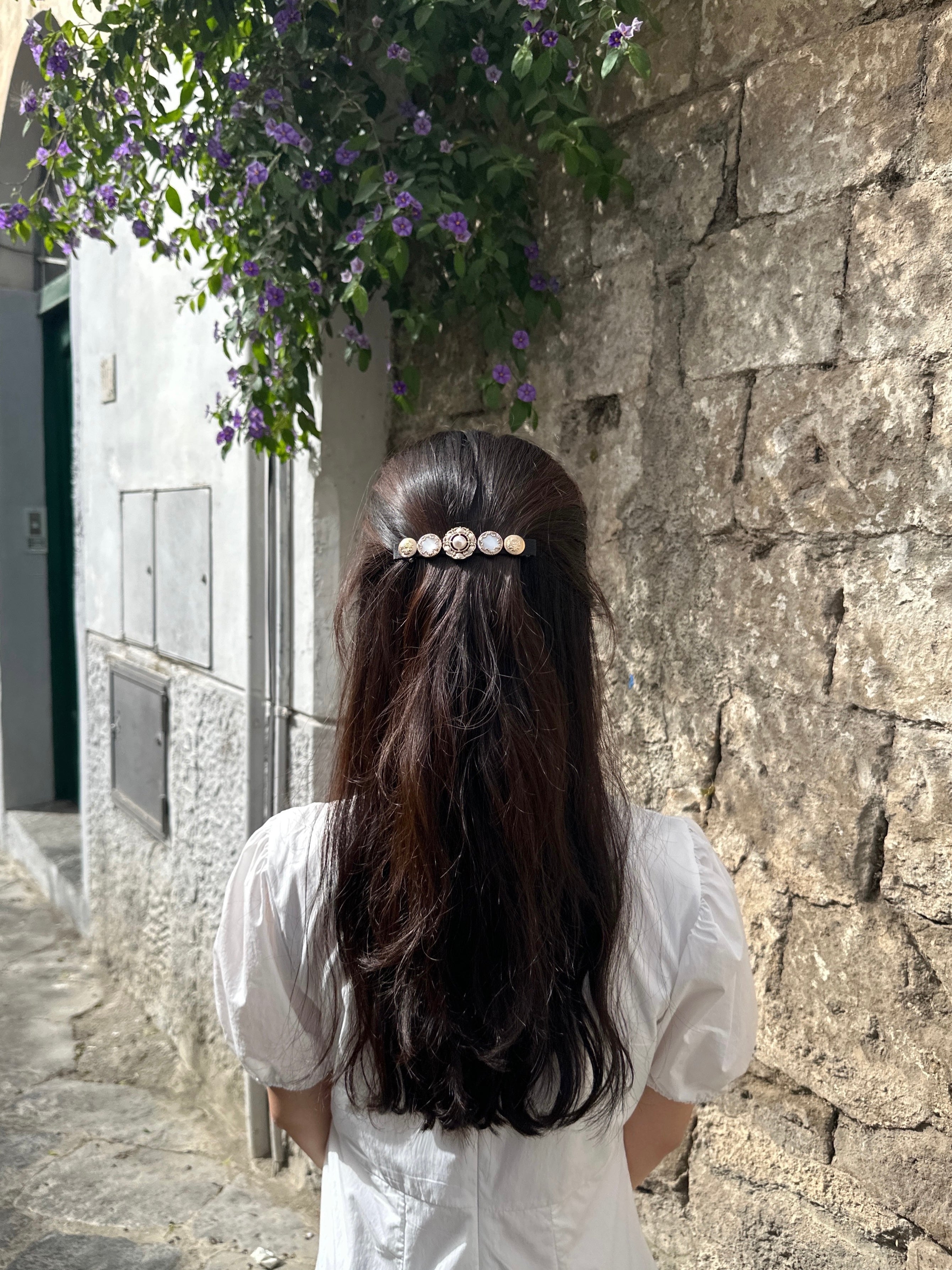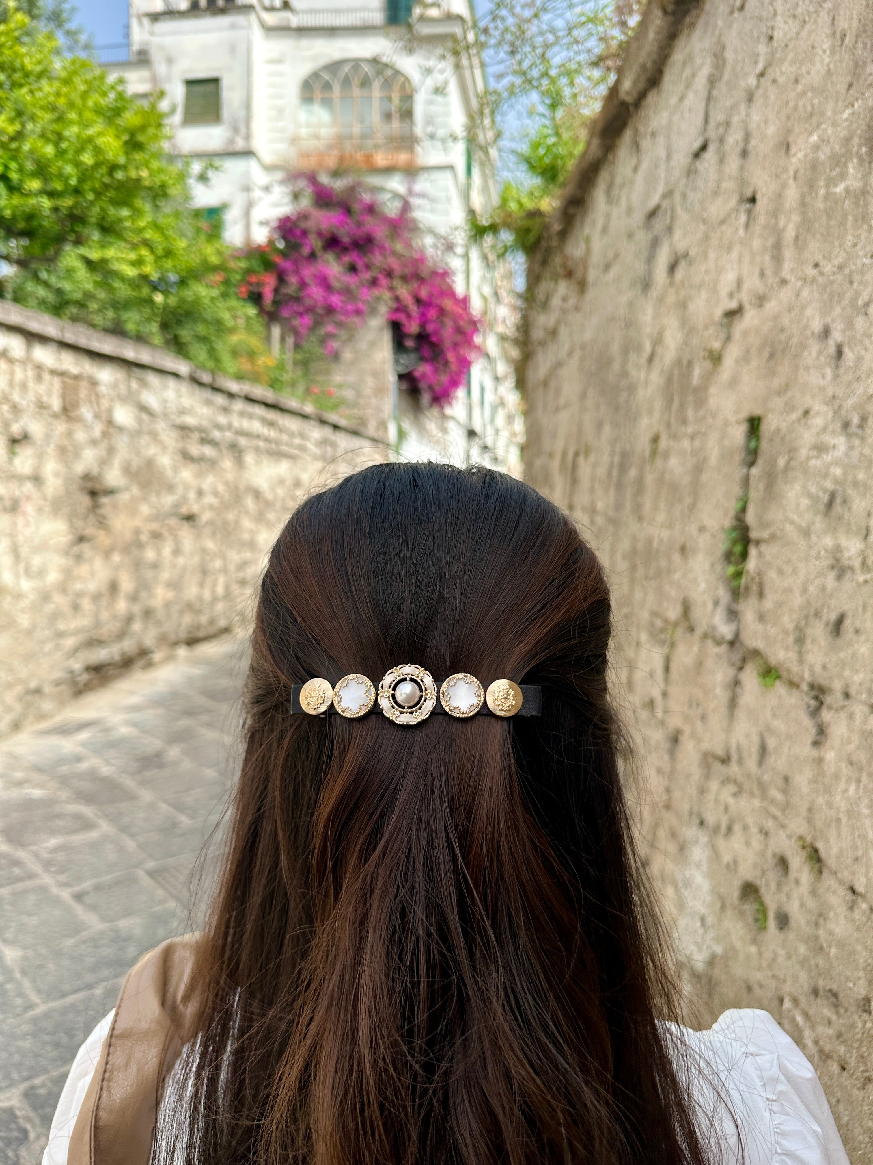 Luna Hair Pin is a sophisticated accessory, combining matte lace casting with leather. It perfectly captures Mela Bianca's unique style, making it a must-have for your collection! :) If hair clips are too tricky for you, try styling your hair easily with pins instead.