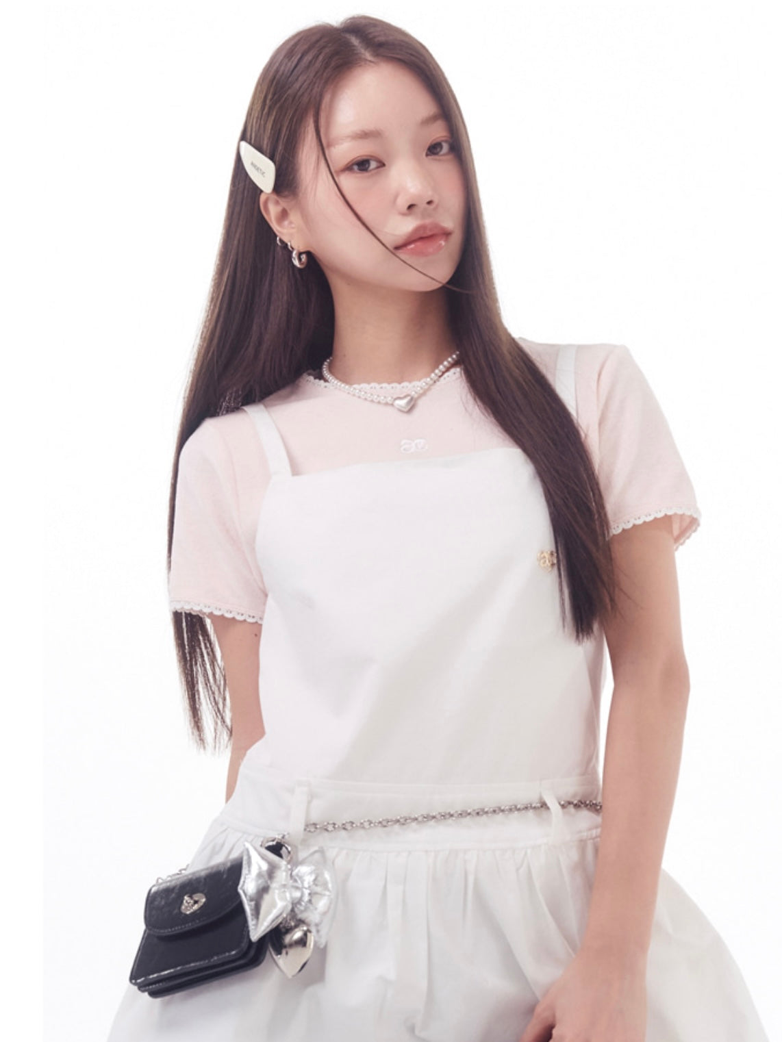 At the offline pop-up event, this product received a lot of love and compliments from many customers for its cuteness. It's a charming short-sleeved tee with a unique towel-like texture and lace details. I think it looks the prettiest when paired with denim. :)