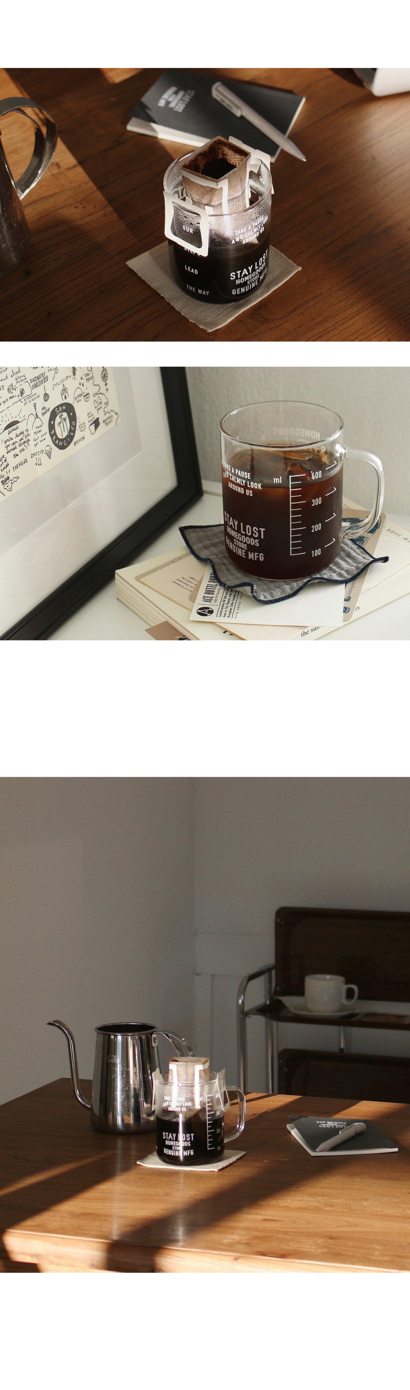 This is a transparent cup imbued with the mood of Stay Lost. It's popular in Korea, especially when paired with a drip bag of Stay Lost. Put in the drinks you want depending on your daily mood. :)